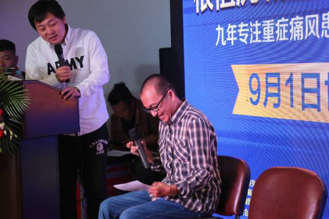 然后由張芮袀先生分享抗風(fēng)竤團(tuán)隊(duì)走過的九年歷程。從自己也是一位痛風(fēng)患者講起,介紹了“東北雌性紅蘿卜”不僅治愈了自己,也治愈了身邊的人。由此想到組建團(tuán)隊(duì),讓治痛風(fēng)的方式更廣闊的傳播出去,以幫助更多的痛風(fēng)患者。制定“世界抗痛風(fēng)日”的初衷就是呼吁社會多關(guān)注痛風(fēng),遠(yuǎn)離不良的生活方式,同時希望這種治療痛風(fēng)的療法能走出全國,走向世界!
